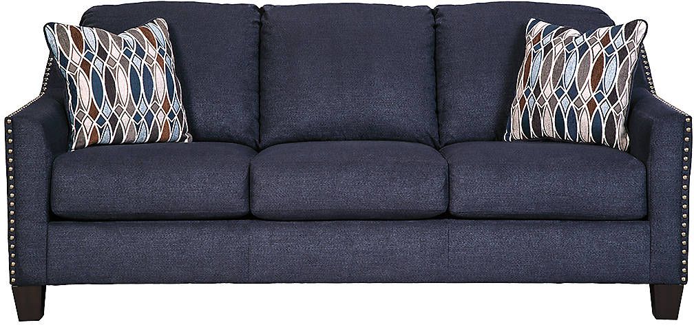 Break up with boring furniture. Get the fresh style you deserve with the chic design of this Creeal Heights sofa. Celebrate its confident ink-blue fabric finish with a brushed texture on high-resiliency foam cushions and padded back for on-demand comfort and style. Never dull, this contemporary sofa delivers the glam with a nailhead trim and exposed faux dark wood legs for a style that is always welcomed in your trendy living room.