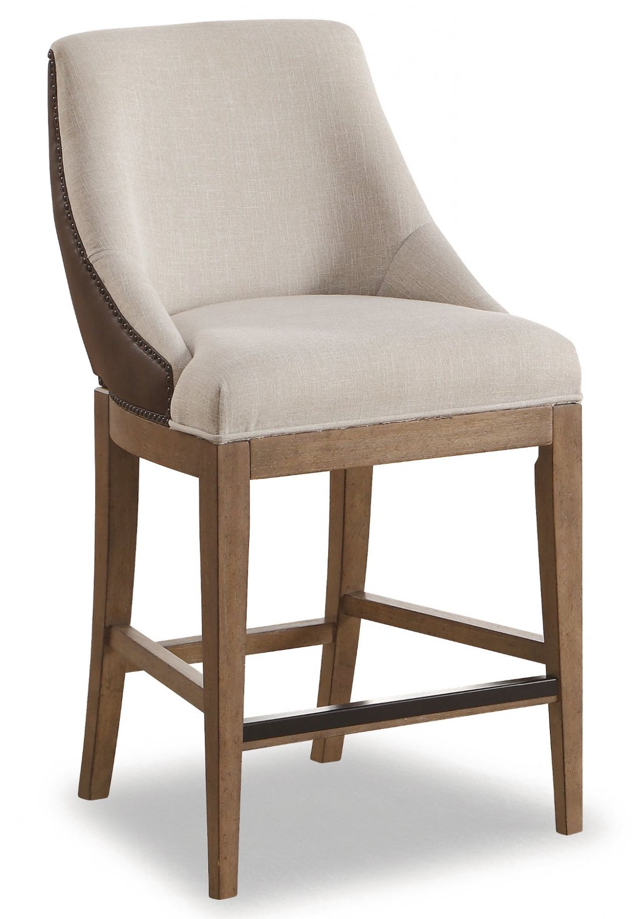 Quality oak veneers and solid wood Distressed warm gray wood finishFabric-upholstered back and seat (only available in fabric shown)Coordinating Carmen rectangular counter table is available.
