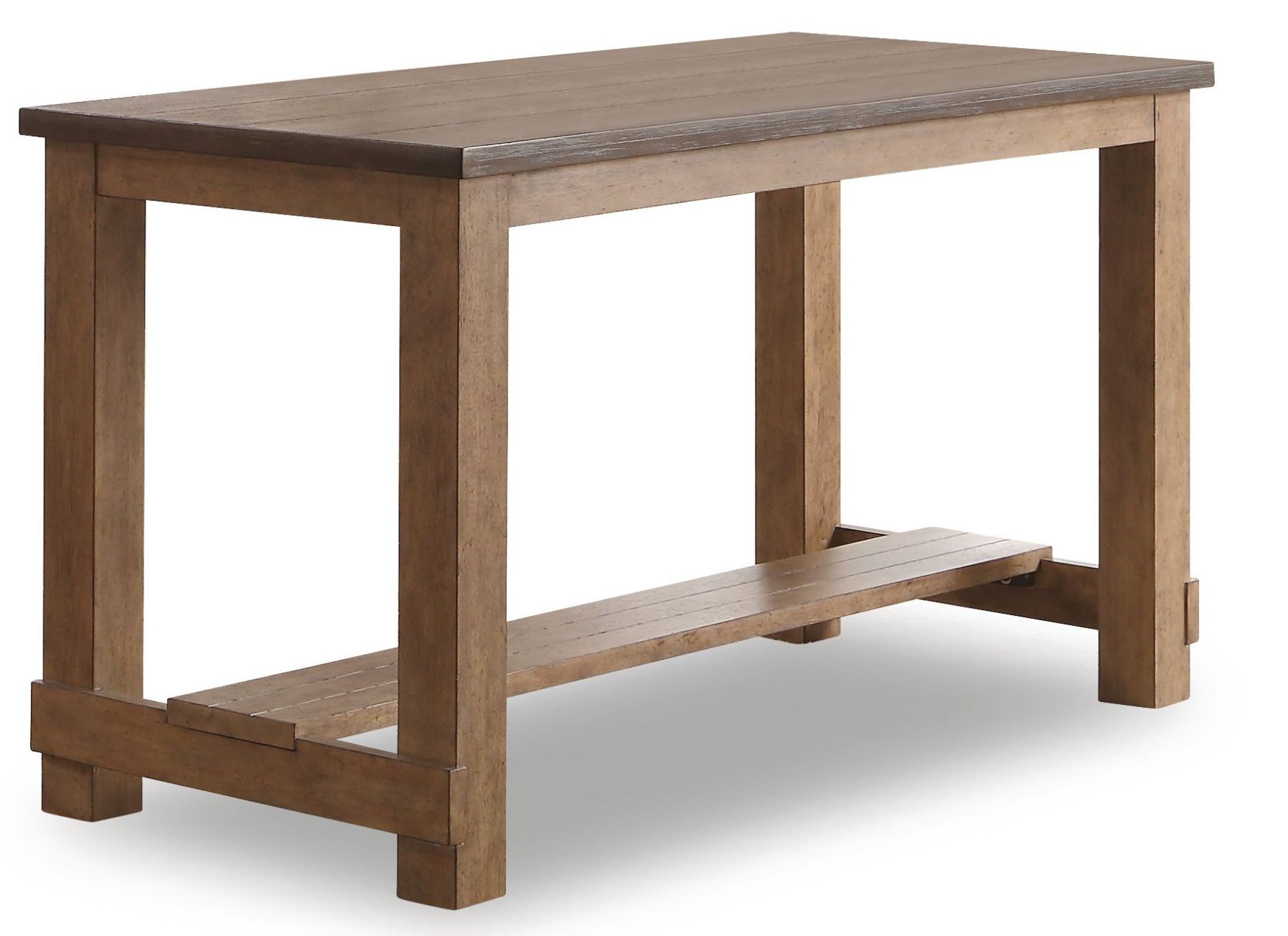 Quality oak veneers and solid woodDistressed warm gray wood finish with tabletop in a dark brown wood finishOne bottom shelfCoordinating Carmen counter chairs are available.
