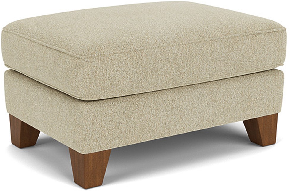Add complementary style plus additional seating and support to your space with the luxury cushioning of this contemporary ottoman complete with warm accents of tapered, wooden legs.
