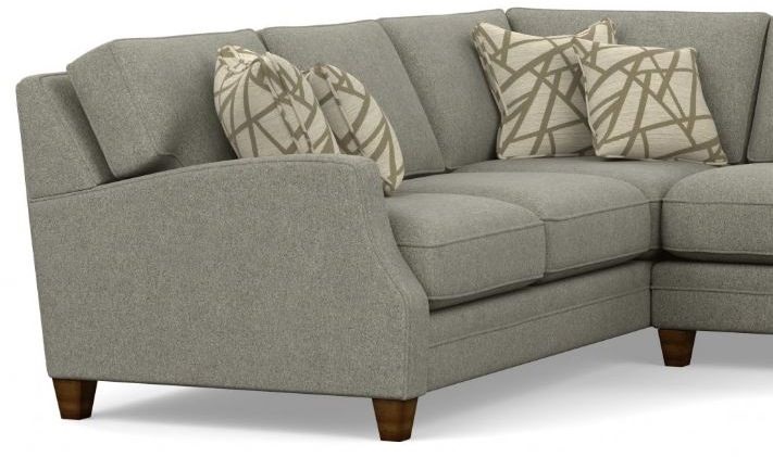 Optional contrasting weltBlue Steel Spring unitsLoose-pillow back cushionsReversible plush seat cushions (feather and extra-firm luxury cushions are also available)Cushion-ledge construction keeps the back cushions from sliding behind the seat cushions.Box and square accent pillows with zipper closures and feather filling (custom options are available; standard pillow quantity varies depending on components used in a configuration)Florentine wood finish (all wood finish options are available)Connecting clips secure sectional pieces together.