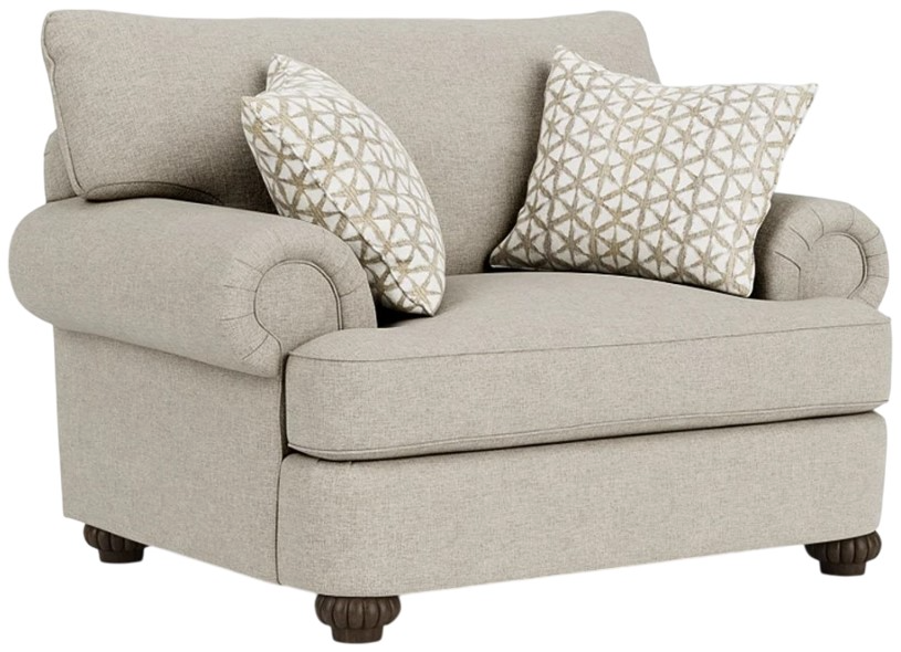 Prominently rolled arms and a padded front rail give Patterson its welcoming appearance. Overstuffed seat and back cushions on a large frame make it difficult to resist curling up on this piece. Fluted bun feet and optional nailhead trim add the finishing touches to Patterson.Read More