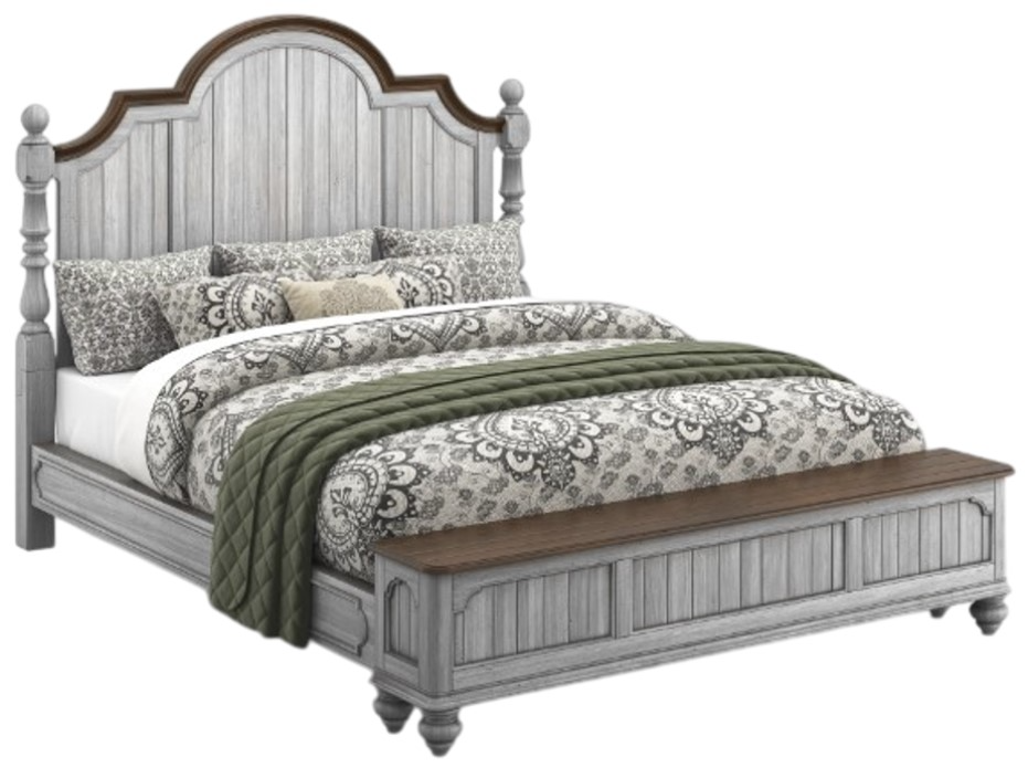 Shabby chic design with a bit of vintage. The Plymouth bed boasts a shabby chic design with contrasting wood finishes and paneled construction. With an overall graywash finish accented by dark trim, Plymouth is ideal for those who like a bit of vintage design in their modern lives.Read More