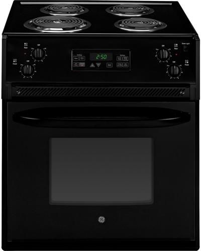 GE® 28" Black Drop In Electric Range with 3.0 cu. ft. capacity, chrome drip bowls and delay bake optionRead More