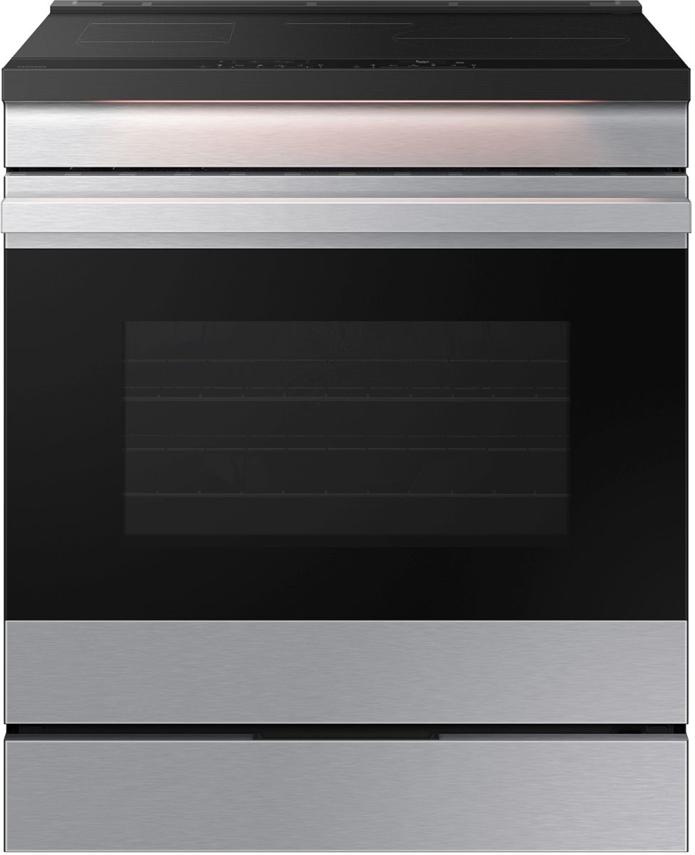 Samsung's smart induction range features an Ambient Edge Lighting™ that illuminates your kitchen and lets you see if your food is still cooking from a distance. The Anti-Scratch Matte Glass Cooktop 54% more scratch resistant and more durable will keep your range looking like new.