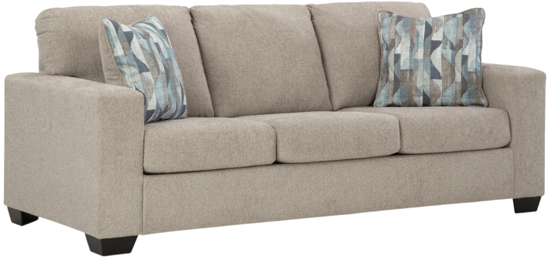 You’re in for a neat treat with this sofa. Its comfy seats are covered in soft, textural upholstery, and the wide track arms are eager to support your quest for total relaxation. Distressed abstract toss pillows bring a fresh breath of contemporary style while accentuating the sofa's color.Read More
