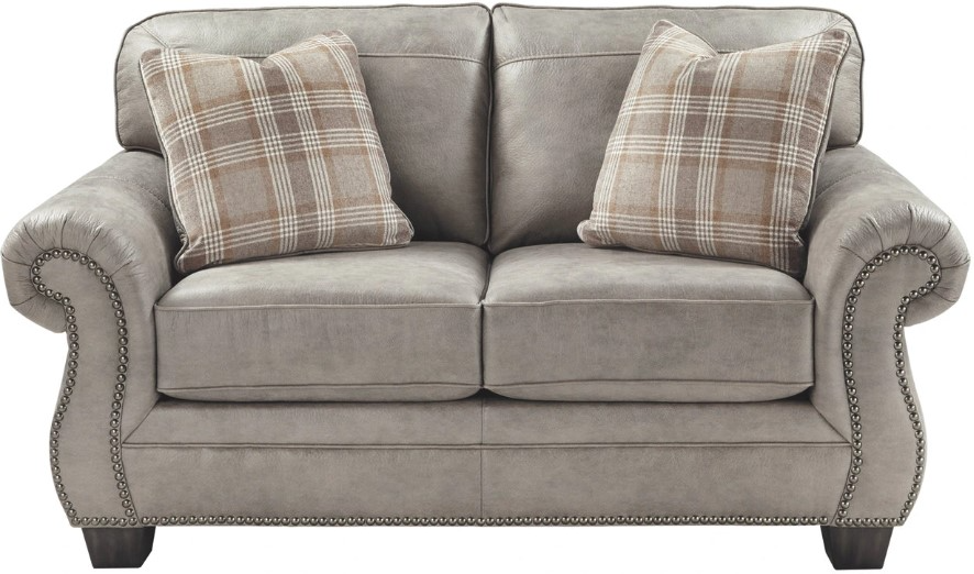Seamlessly merging classic elements with modern trends, this loveseat invites you to bring home the best of then and now. Wrapped in a fabulous steel gray upholstery with sumptuous suede-like feel, this easy-elegant loveseat is dressed to impress with updated roll arm styling and tailored touches including nailhead trim and window pane stitching.Read More