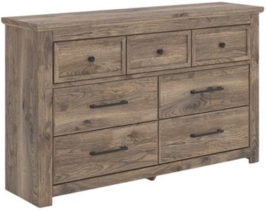 Classically chic. This dresser marries traditional design with modern accents. Its deep brown finish recalls the authentic touch of hickory grain for a rich look and feel. Assorted drawers neatly store your essentials in charming fashion. Sincere in its styling, this piece sets the scene for a warm, welcoming vibe in your bedroom.Read More